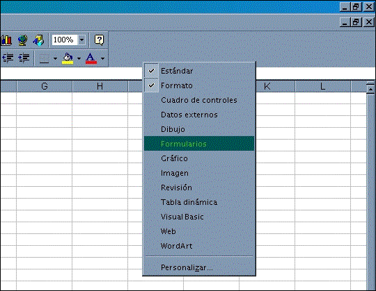 Para ello haremos visible la barra de herramientas de Formularios, como podemos ver en la figura 20.