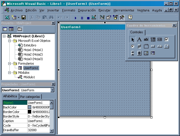 Al hacer click aparecerá la barra de herramientas en la cual se encuentran una serie de elementos insertables y que podemos enlazar con una macro. Veamos en la siguiente figura cómo esta compuesta esta barra de herramientas.
